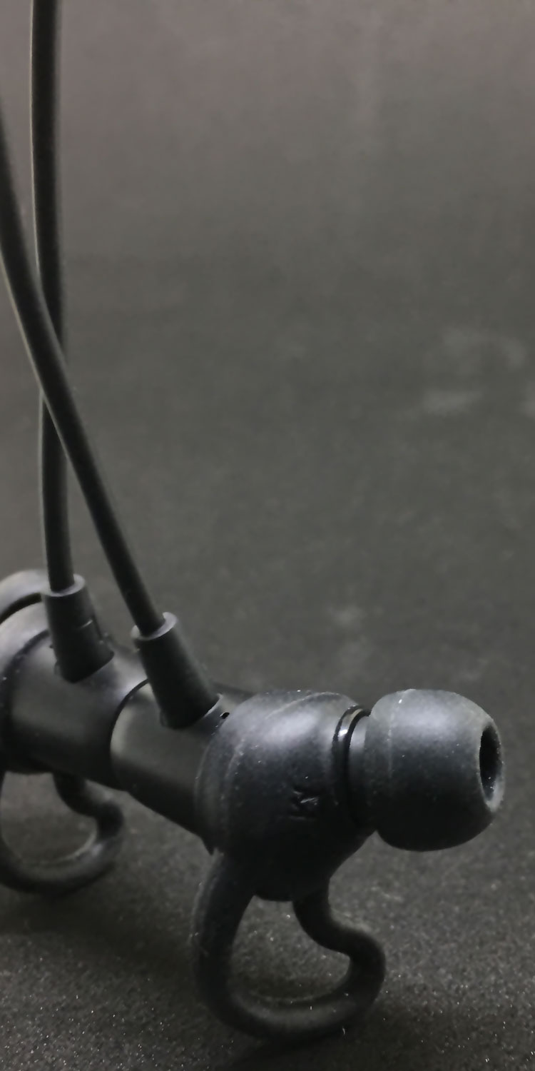 Im Lieferumfang sind, typisch für Anker, die Karte mit der der vorderseitigen Aufschrift “Happy?” und der rückwärtigen Aufschrift “Unhappy?”, ein Ladekabel, eine Klemme zur Befestigung an der Kleidung, ein “Ding” um das Kabel einzukürzen sowie diverse Aufsätze für beinahe jede Ohrenform. Das Kabel zwischen den einzelnen Ohrsteckern kann man in unterschiedlichen Farben wählen und somit für den eigenen Geschmack aussuchen – ich habe natürlich das klassische Schwarz für mich ausgesucht.
